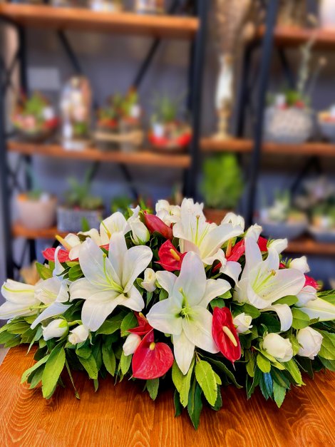 Beyaz lilyumlar çiçeğin solda sağa boyu yaklaşık 65.cm