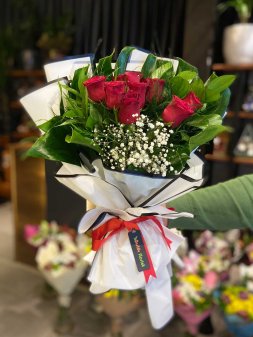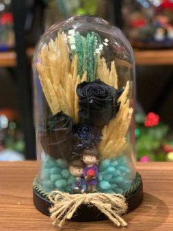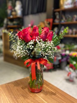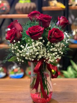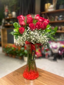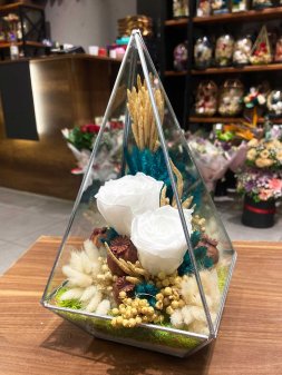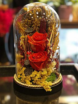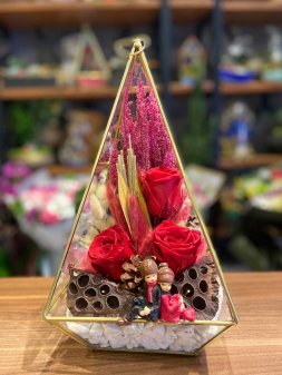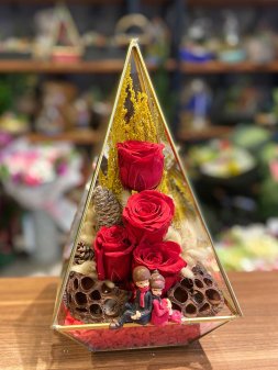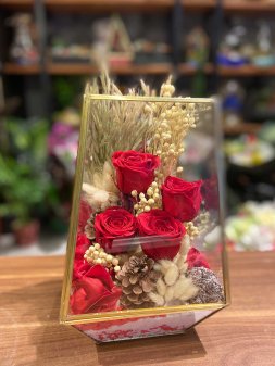 Solmayan 3 adet kırmızı gül kuru çiçeklerle